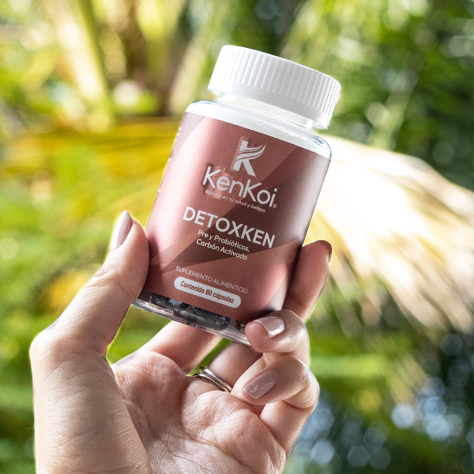 Equilibra tu digestión con DetoxKen: prebióticos, probióticos y carbón activado que ayudan a desinflamar, limpiar el intestino y fortalecer tu salud intestinal.