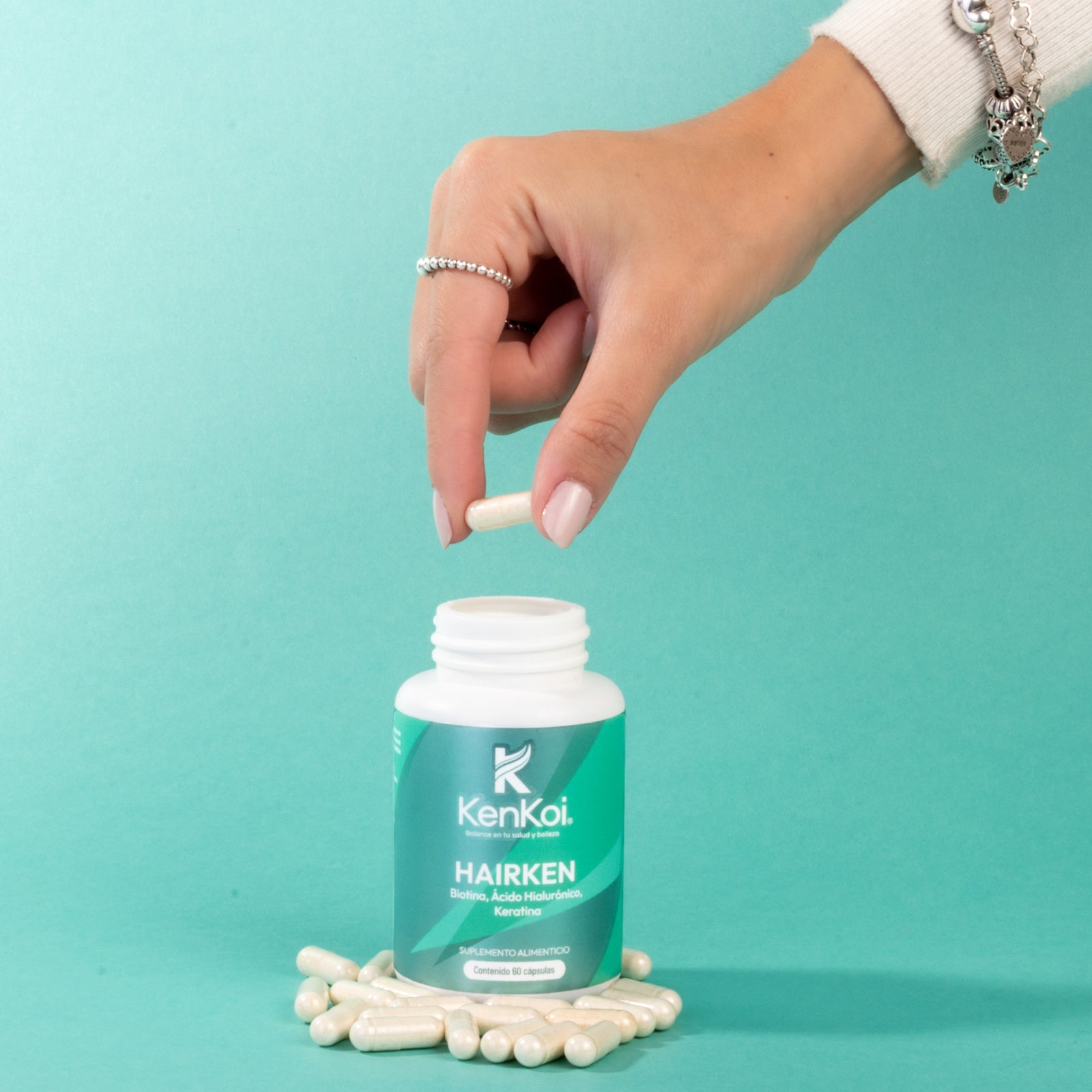 HAIRKEN Suplemento para Cabello Fuerte y Sano con Biotina, Queratina y Ácido Hialurónico
