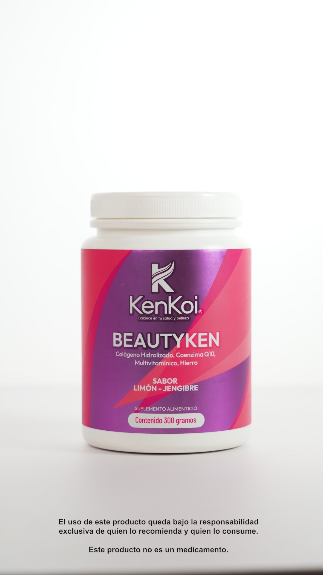 BEAUTYKEN Suplemento de Colágeno Hidrolizado, CoQ10, Multivitamínico, Hierro sabor limón-jengibre, 300g.